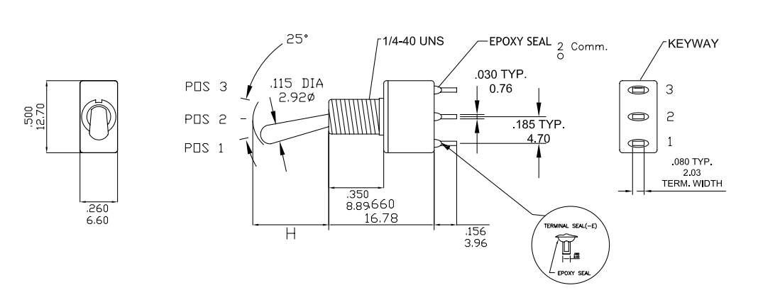 Contact Rating: 6A@125VAC or 28 VDC; 0.4VA max@ 20VAC OR DC max.