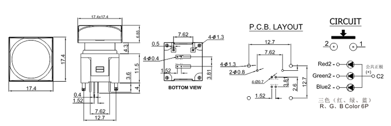 帶燈按鈕開關(guān),LED燈有單燈,雙燈以及RGB全彩,按鍵尺寸有多種規(guī)格,可根據(jù)各大需求任意定制各種絲印,這類按鍵常用于廣播控制臺,視頻音頻處理器等。