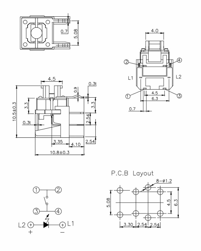 Operating Force:180±50gf or 250±50gl