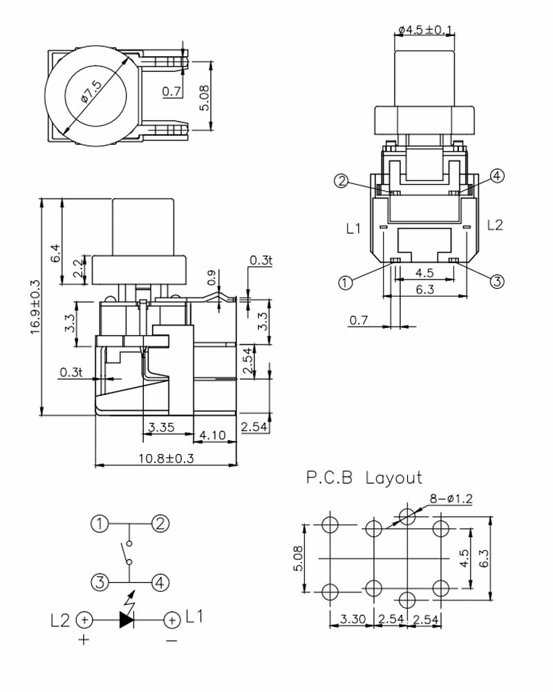 Operating Force:180±50gf or 250±50gl