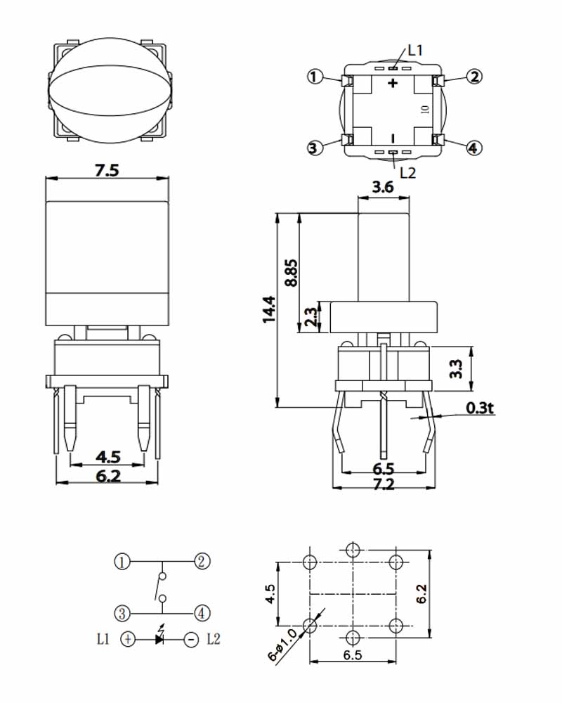 帶燈輕觸開關(guān)TS系列,結(jié)構(gòu)簡(jiǎn)單、功能簡(jiǎn)單,低電壓低電流,在消費(fèi)類電子產(chǎn)品上很常見的開關(guān)。有插件DIP,貼片SMD;LED燈有單色、雙色和RGB全色;不僅有多種蓋子可以搭配,更能呈現(xiàn)多元的外觀效果。