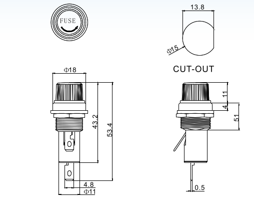 保險絲座FH系列,保險管座常見于PCB固定和螺母固定兩種方式,電流10-30A不等,配置的保險管5*20mm和6*30mm,擁有UL CE CQC認證,廣泛用于汽車行業(yè),家電等
